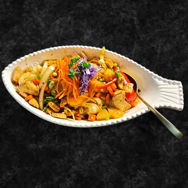 Wok-fried your choice of protein with cashew nuts, vegetables, and a flavorful Thai sauce, served with rice.