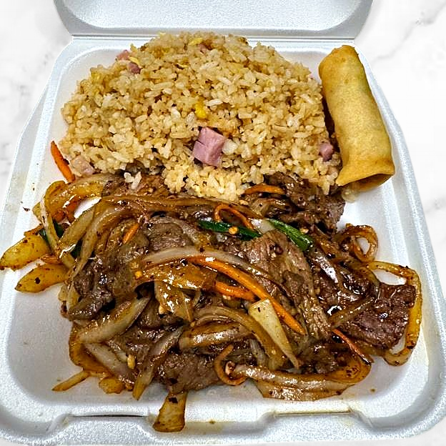Sliced chicken breast sauteed with bell pepper, onion, baby corn, water chestnut, in Brown spicy sauce.