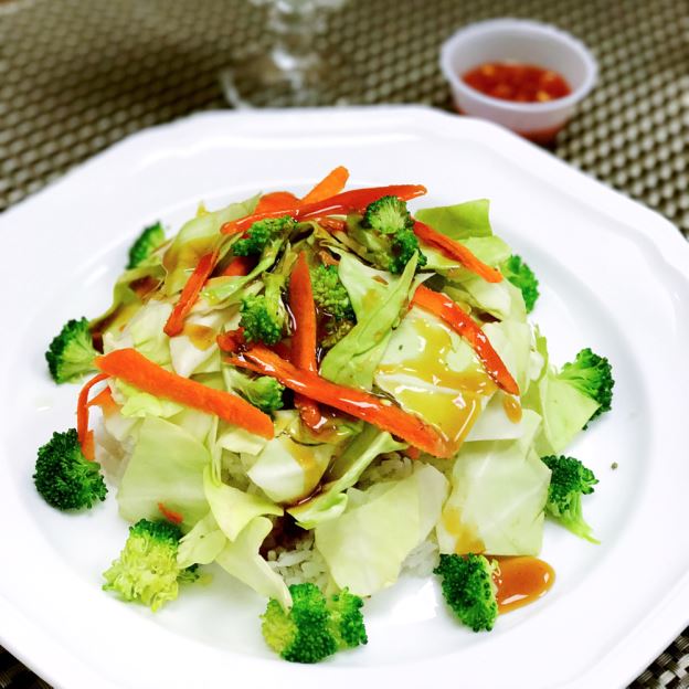 Comes with Rice (Fried or Steamed) and Vegetables (Cabbage, Broccoli, Carrots) Mix