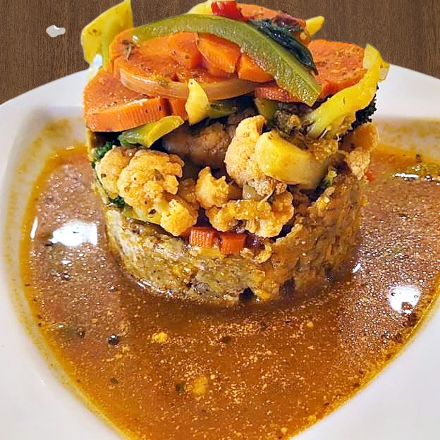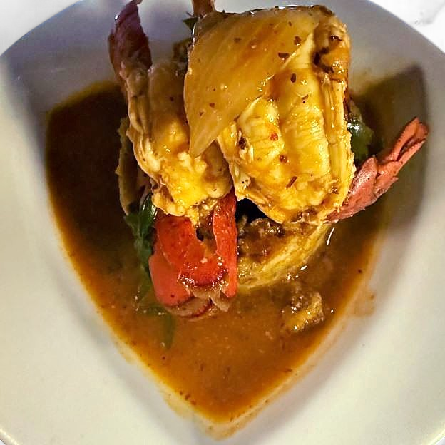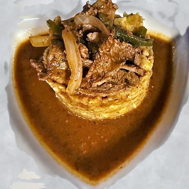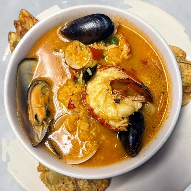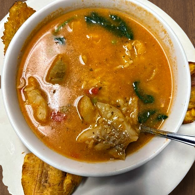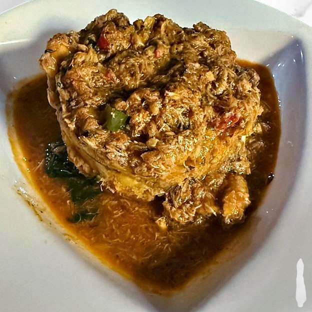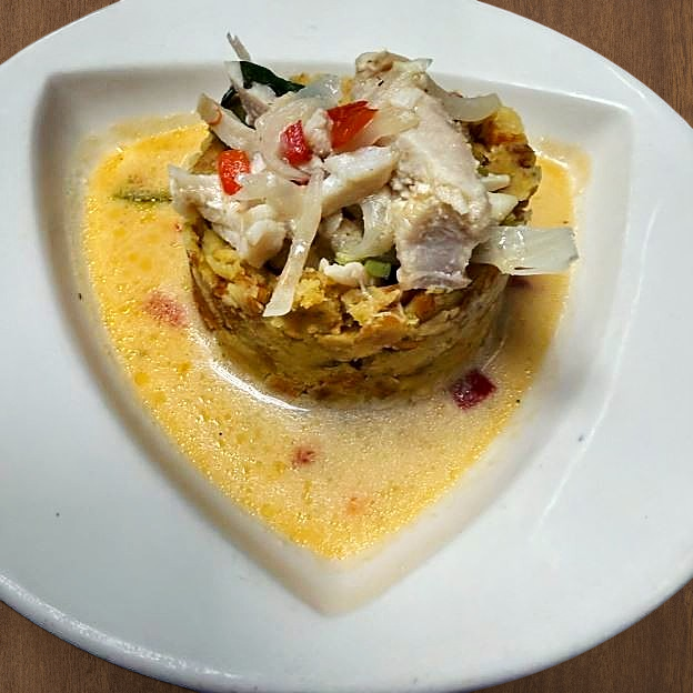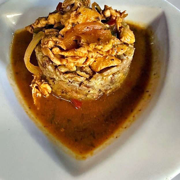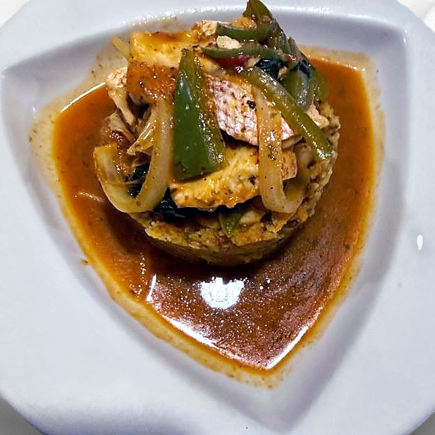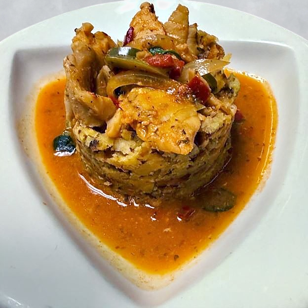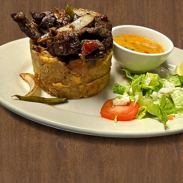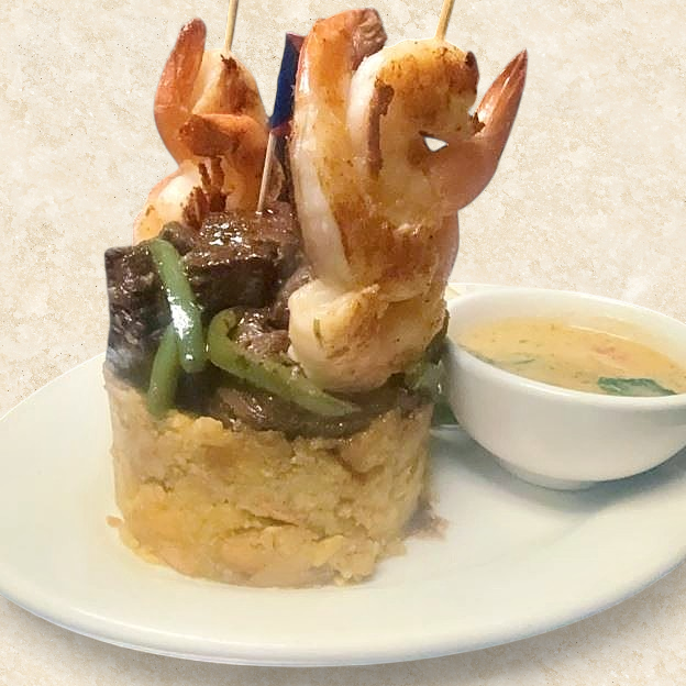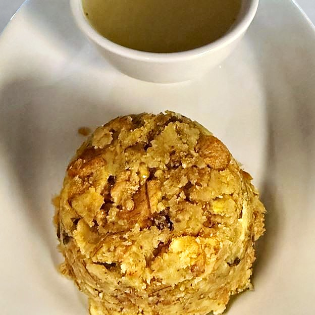Mofongo Green Plantains Mashed with Garlic and Chicharron and Spices Served with Chicken Broth