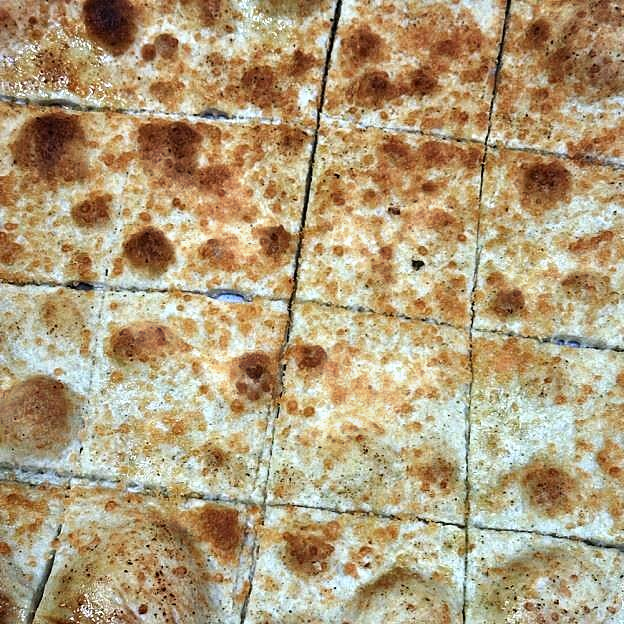 Italian bread topped with tomatoes, basil, garlic, parmesan, olive oil.