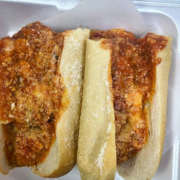 Hand breaded eggplant with our homemade marinara and side of spaghetti and mozzarella
