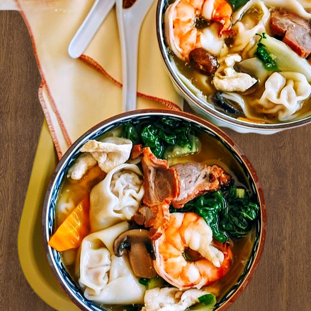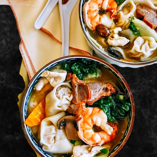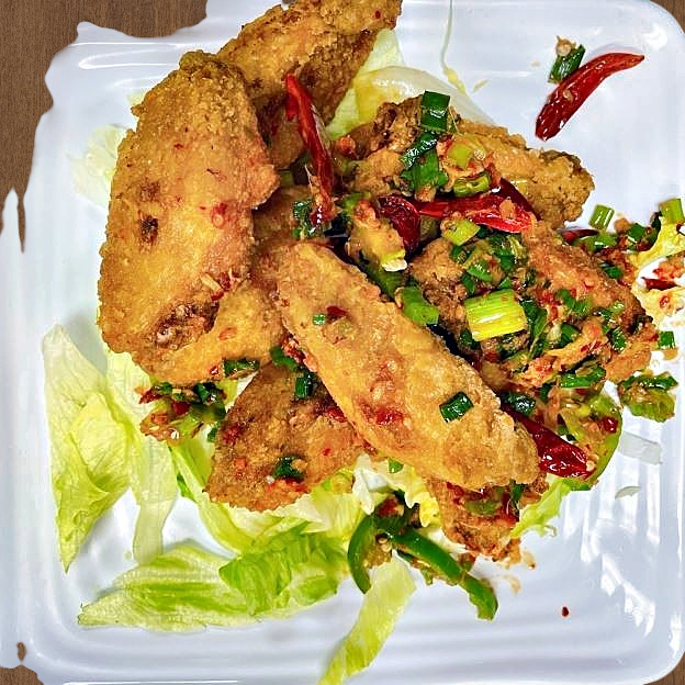 An assortment of our famous appetizers: egg rolls (2), rangoon (2), fried shrimp (4), fried wonton (4), pot sticker (2)