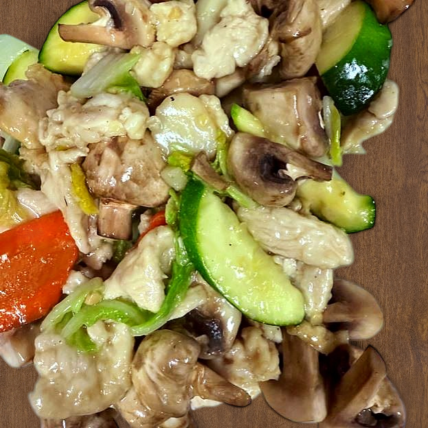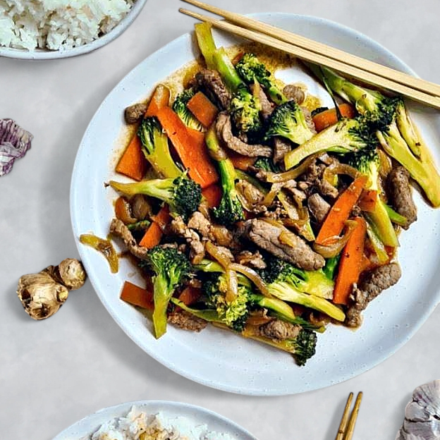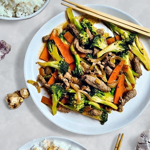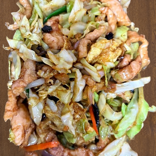 Grilled BBQ pork stir fried with a sweet BBQ sauce