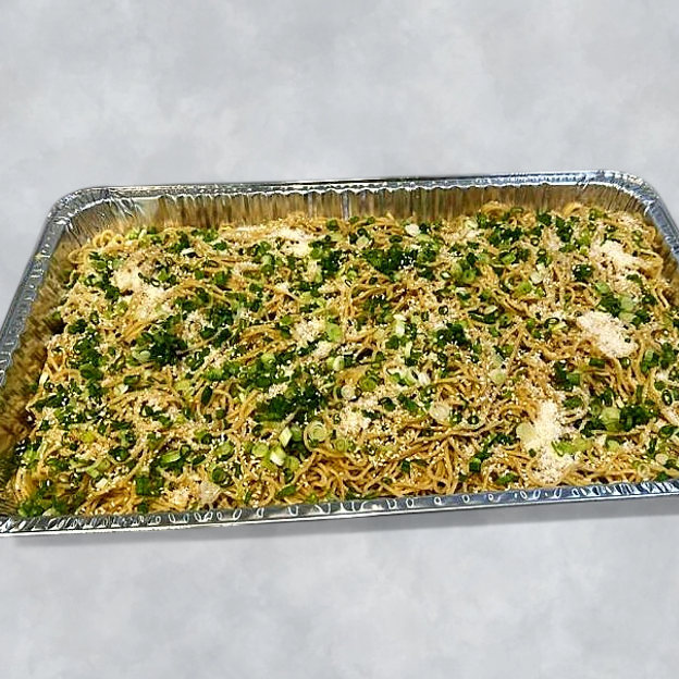 Noodles & Rice Party Tray: A mix of noodles and rice typically includes assorted vegetables, meats, and seafood, stir-fried with Asian seasonings.