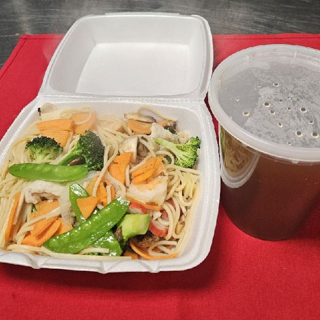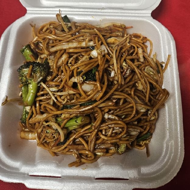 Wok fried lo mein (soft noodle) with shredded vegetable (carrots, napa, celery, bean sprouts, green & white onion)