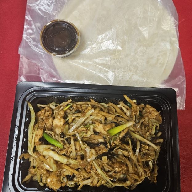 Wok fried lo mein (soft noodle) with BBQ pork shredded vegetable (carrots, napa, celery, bean sprouts, green & white onion)