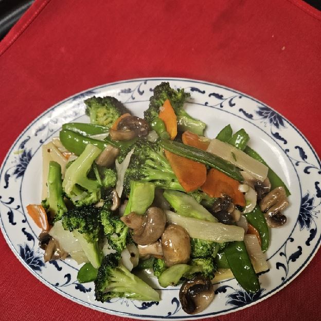 Broccoli, Carrot. Mushroom, Snow Pea, Bamboo w. Chicken and Shrimp