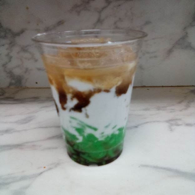 Mix of rice flour jelly, coconut milk, jack fruit, grass jelly, coconut jelly, lychee jelly, sweetened red bean and sweetened condensed milk