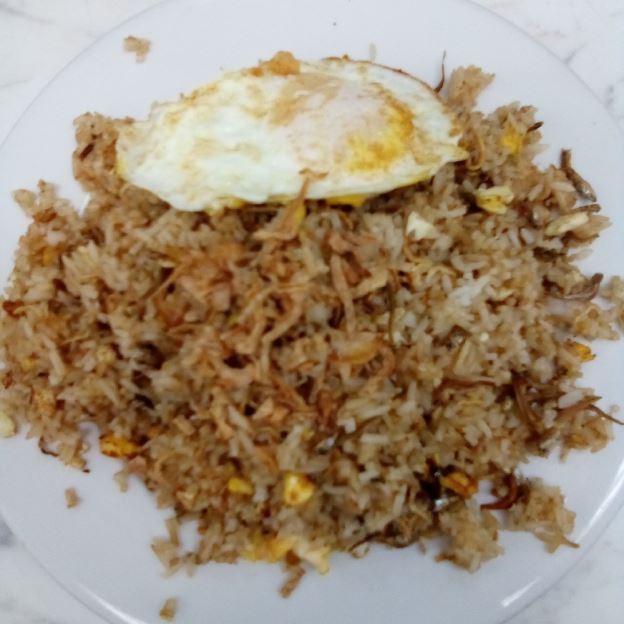 Orek Tempe over rice wrapped in a banana leaf and grilled