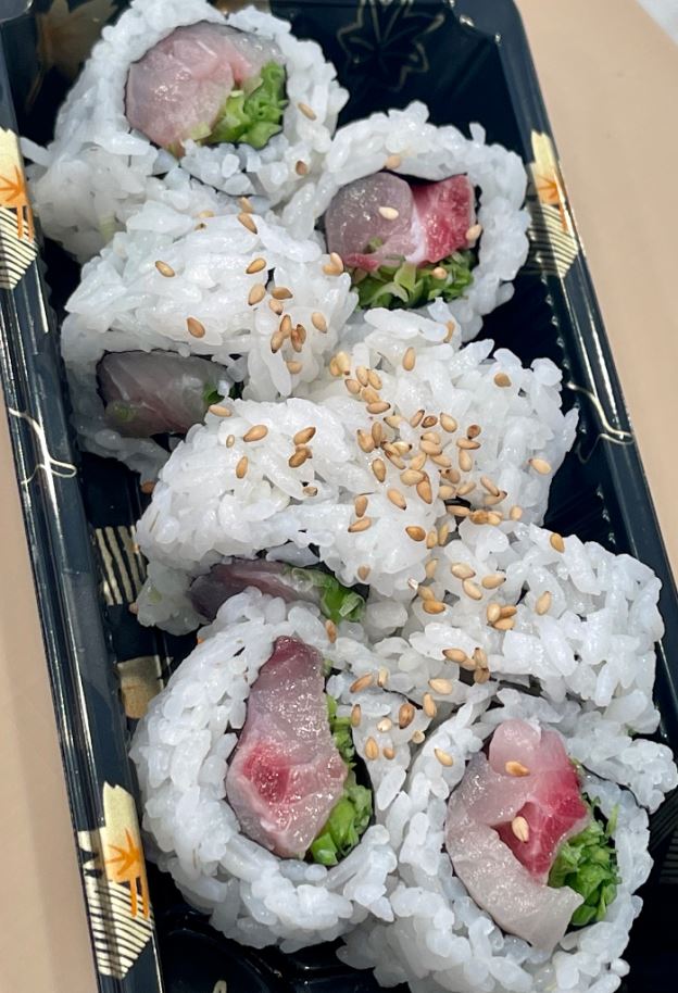 Filled with spicy tuna, topped with yellowtail, jalapeño and scallions.