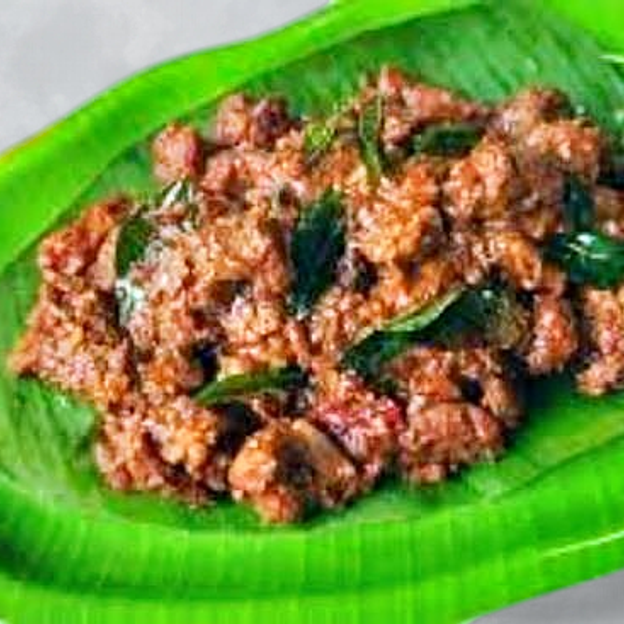Tender chicken slow-fried with bold Chettinad spices — fiery and deeply satisfying.