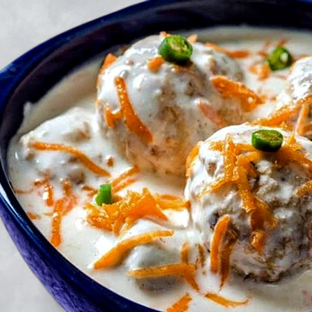 Soft, golden-fried lentil dumplings soaked in cool, creamy yogurt and topped with a sprinkle coriander, and a dash of tempered spices.