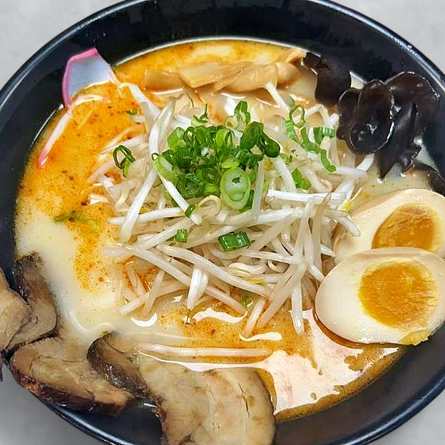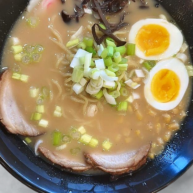 Roasted pork, scallion, bean sprout, nori, corn kernel, egg, bokchoy, fish cake, shredded black fungus