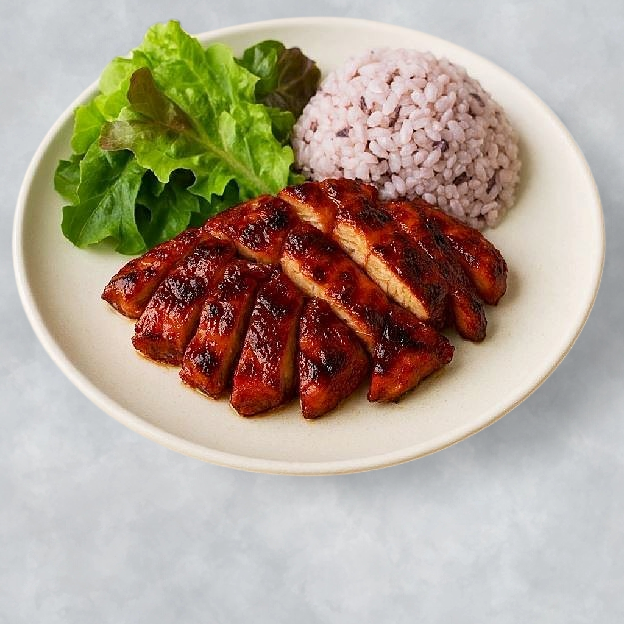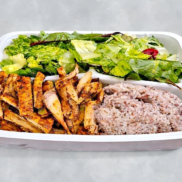 Spicy. Grilled in our signature marinade and served with rice and house salad.