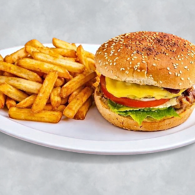 Served on a ciabatta roll with aioli spread and lettuce with fries.