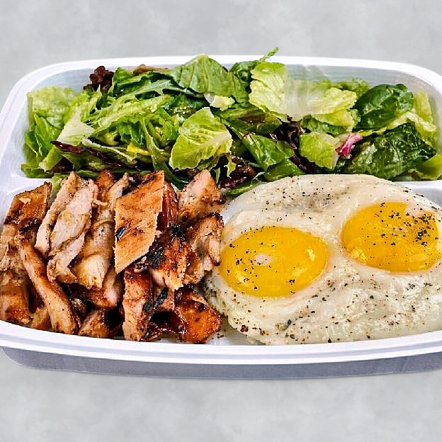 Grilled in our signature marinade and served with rice and house salad. (Eggs on rice is extra)