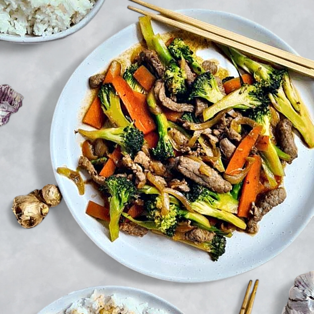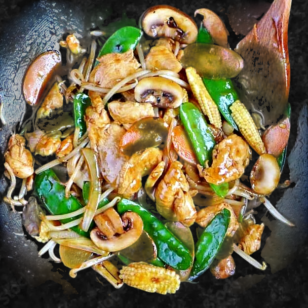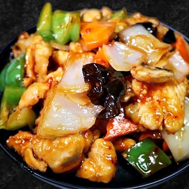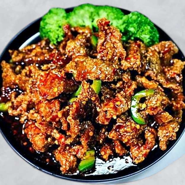 Grilled BBQ pork stir fried with a sweet BBQ sauce.