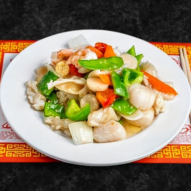 An assortment of our famous appetizers: 2 egg rolls, 2 Rangoon, 4 fried shrimp, 4 fried wonton, 4 sesame balls.