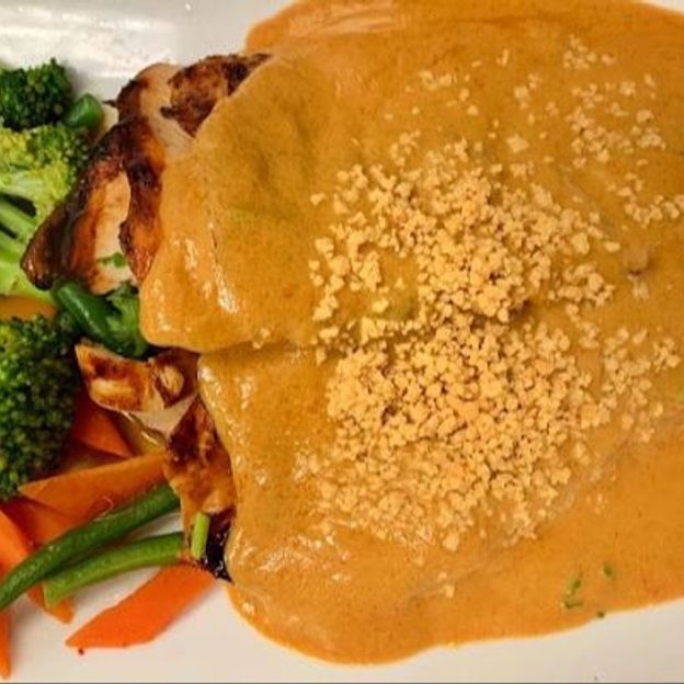Fresh mixed greens, romaine lettuce, carrots, cucumber, tomato, onion, and avocado served with house peanut dressing. Add Grilled Chicken +$5.00