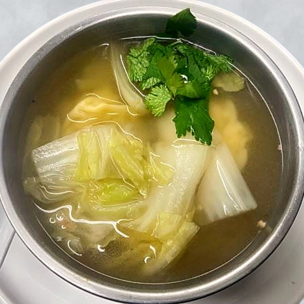 Steamed wontons stuffed with seasoned chicken and Napa cabbage served in a clear savory chicken broth.