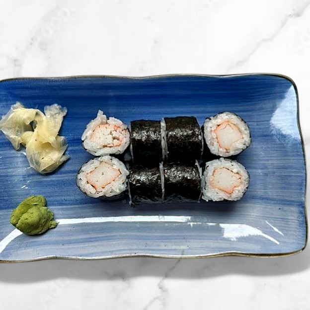 6pcs of sashimi and 1 California roll