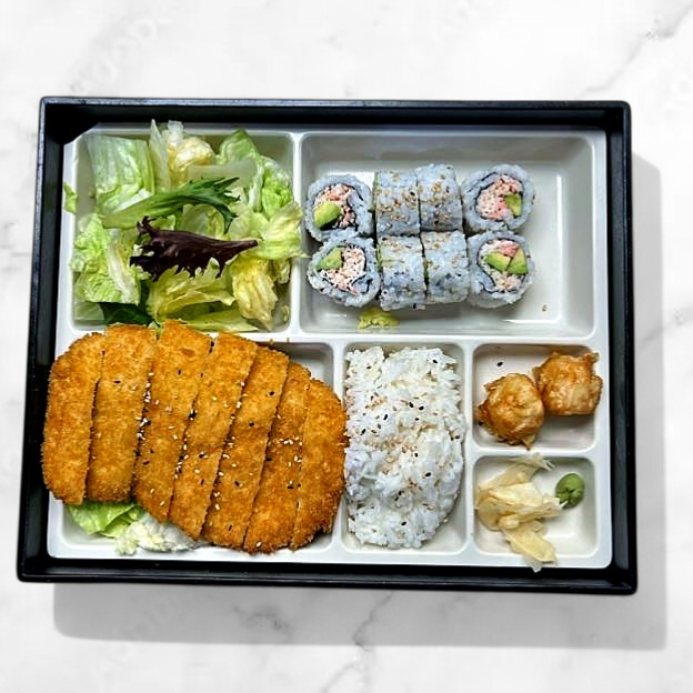 Tuesday - Saturday 11:00am-3:00pm. Served with green salad, rice, California roll and miso soup. Change to brown rice for extra charge(+1$).