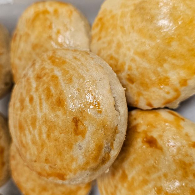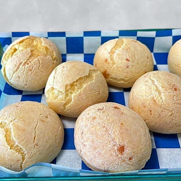 A popular gluten-free snack made with tapioca flour and cheese. Crispy on the outside, soft and cheesy inside. Served fresh and warm.