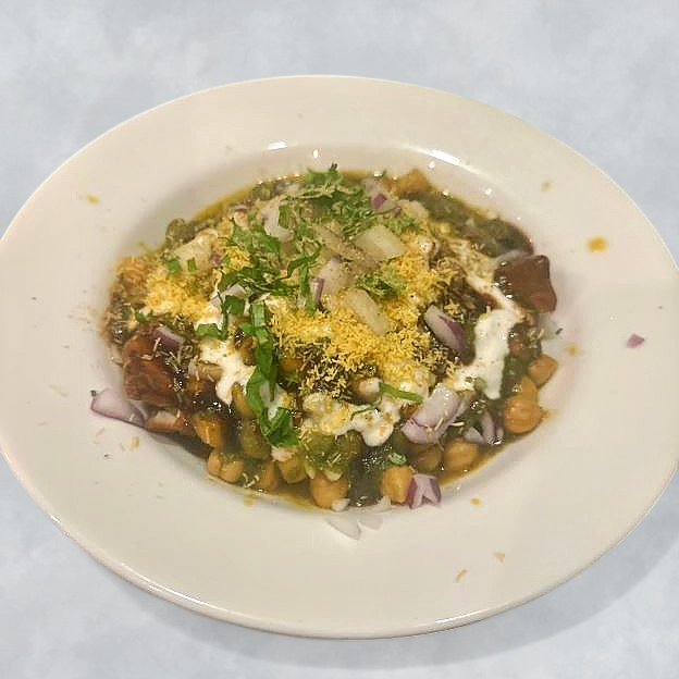 Crispy, hollow, fried dough balls (puris) filled with a mixture of spiced potatoes, chickpeas, and onions, then drenched in a tangy, spicy, and often sweet flavored water.