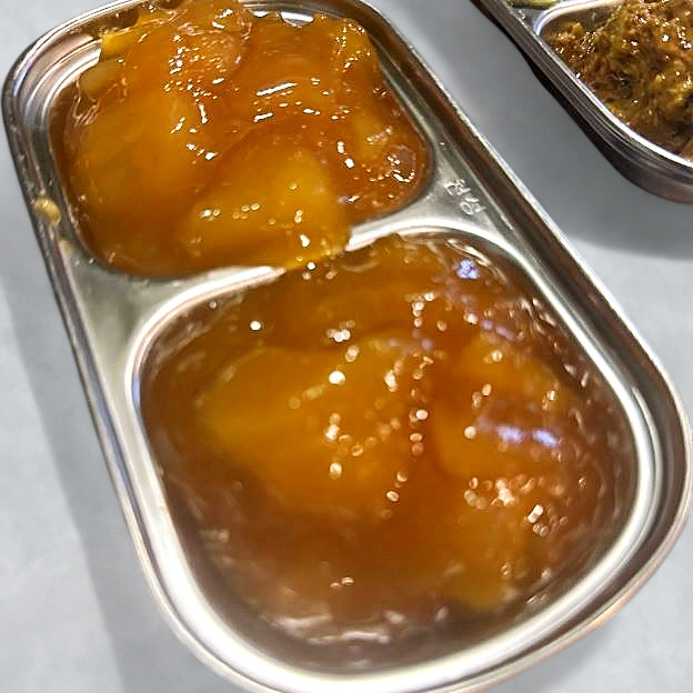 Puffed rice, crispy bread, potatoes, onions, spicy tangy chutneys