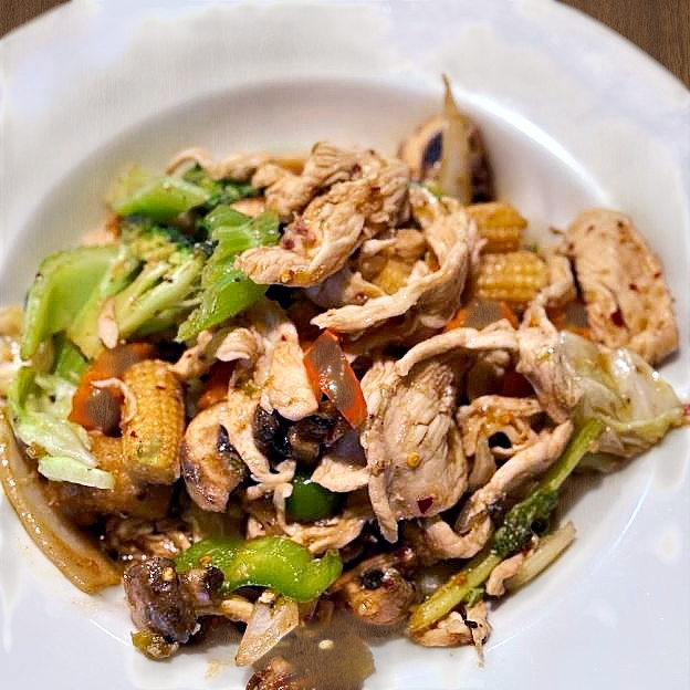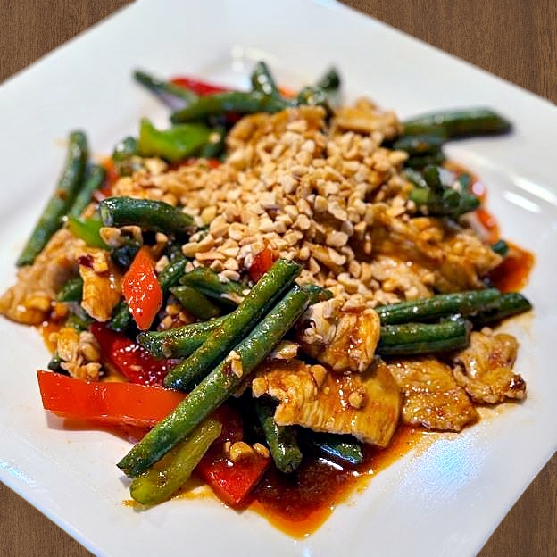 Lightly tempura-battered and deep-fried, tossed with sliced onion and jalapeños