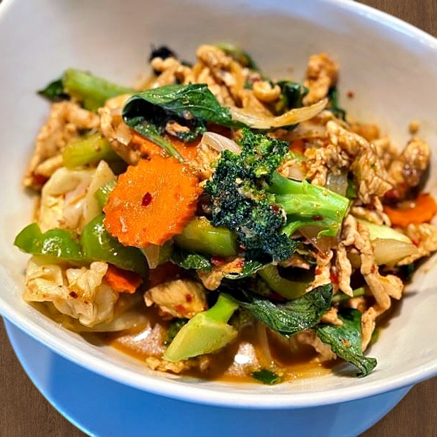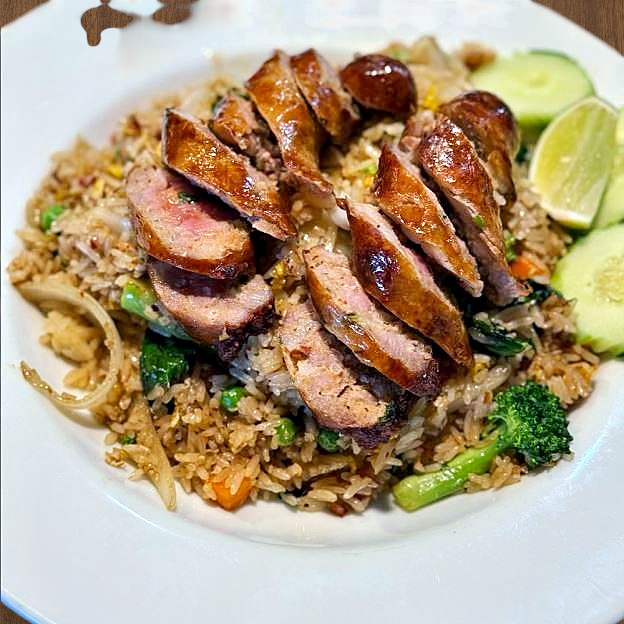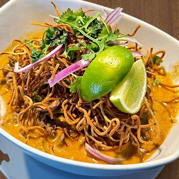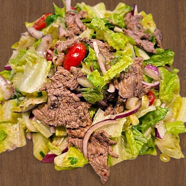 Grilled beef over mixed greens with cucumber, mint, lemongrass, onion, tomato, cilantro and toasted rice. Tossed in a tangy lime-chili fish sauce dressing.