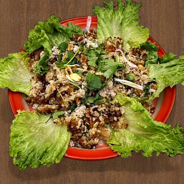 Traditional Thai minced meat salad with mint, toasted rice, and lime-chili dressing.