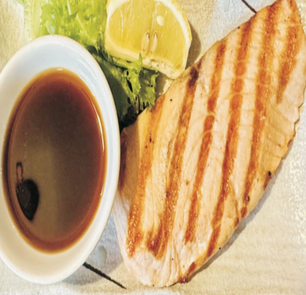 Grilled salmon filet with salt,sake and serve with ponzu sauce