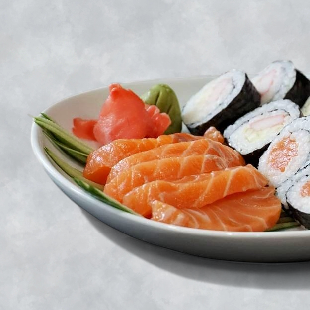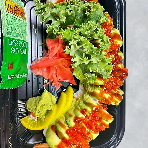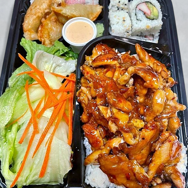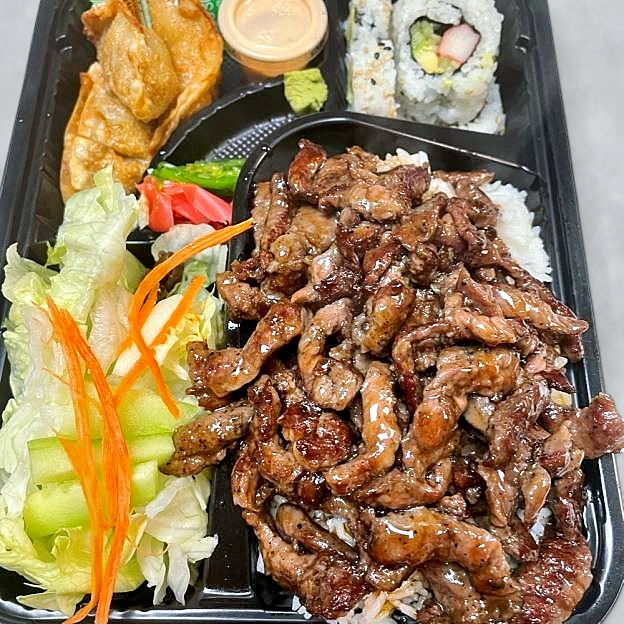 Served with: Steamed Rice, California Roll (4pcs), Dumplings (3pcs), Garden Salad.