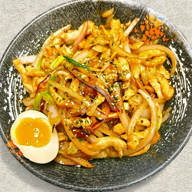 (Egg Noodle) Stir-fried with onion bell pepper, red pepper, bean sprout, scallions