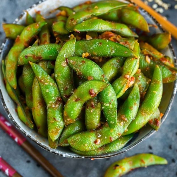 Steamed soybeans tossed with fragrant garlic and sea salt.