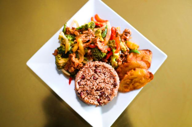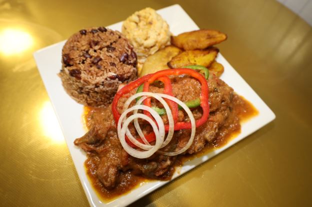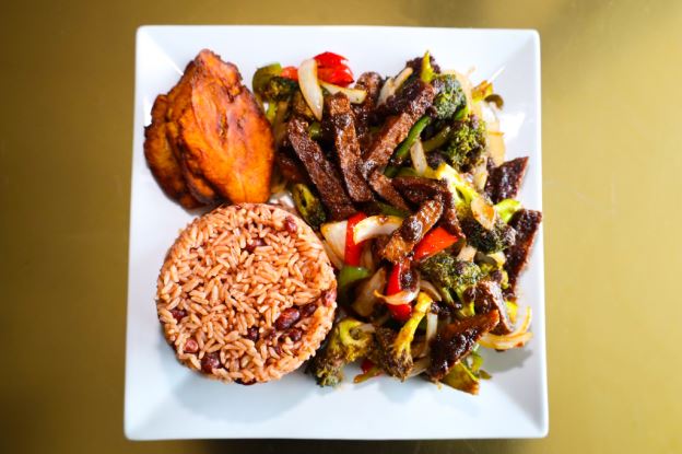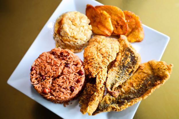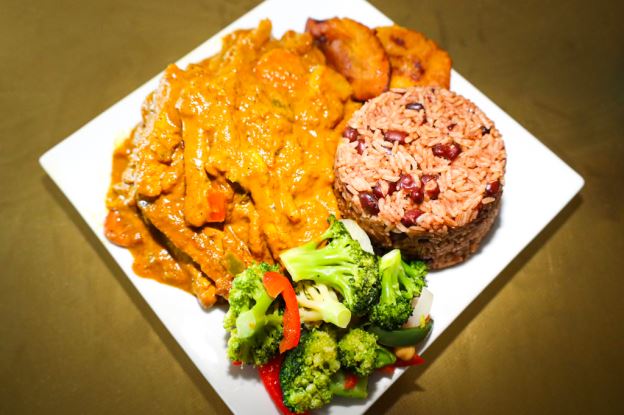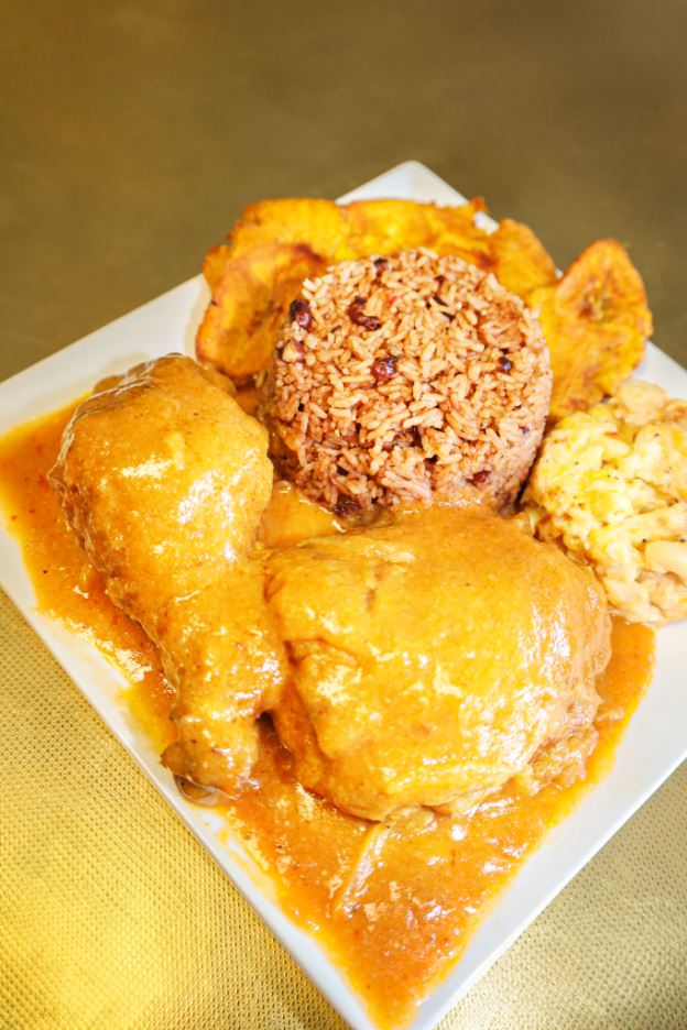 Marinated in Haitian Flavored Creole Sauce served with Rice & peas and fried sweet plantains