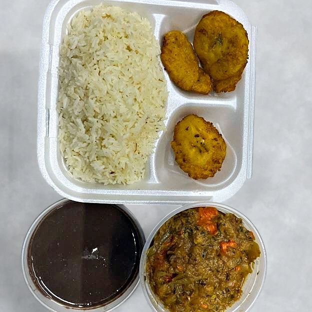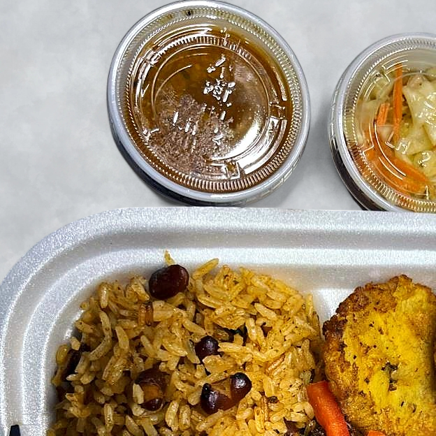 Rice cooked with pigeon peas, seasoned with Spanish chorizo, sofrito, onions, and sazon.