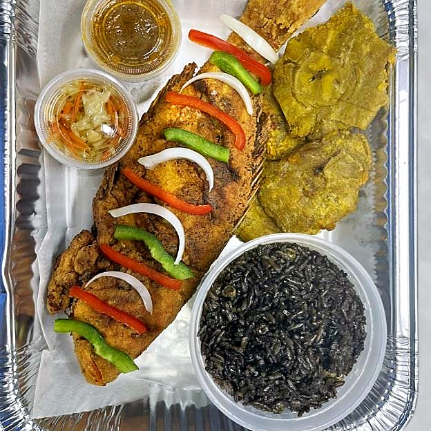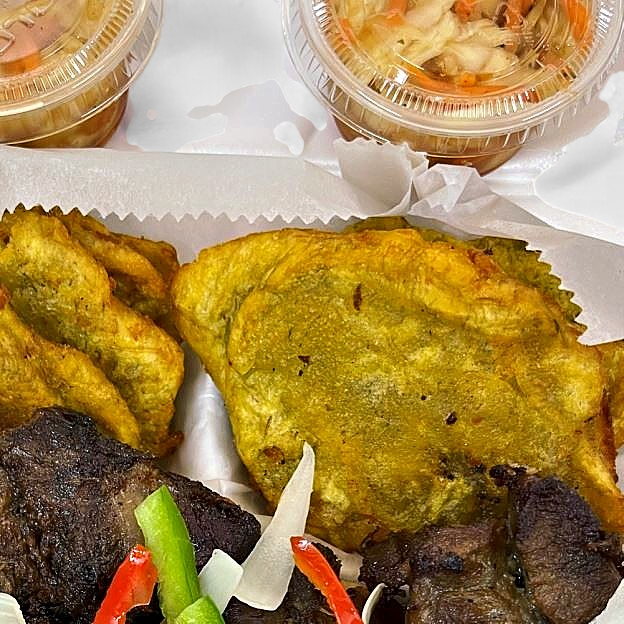 Marinated pork chunks, fried to perfection, typically served with plantains and pikliz (Haitian spicy slaw).