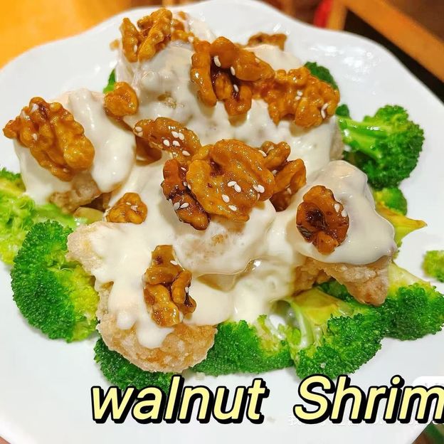 Crispy shrimp with our general tsao's sauce and fresh broccoli on the side