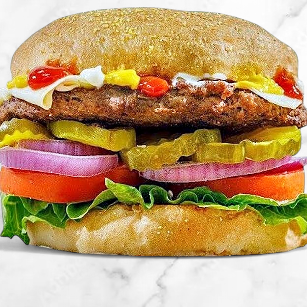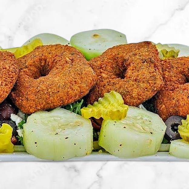 (Veggie burger) deep fried ground chick peas, fava beans, parsley, and vegetables served in a golden browned pita bread pocket.
