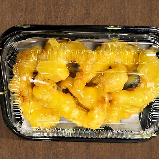 Grill shrimp, bean sprouts, corn, scallions, poached egg & fishcake