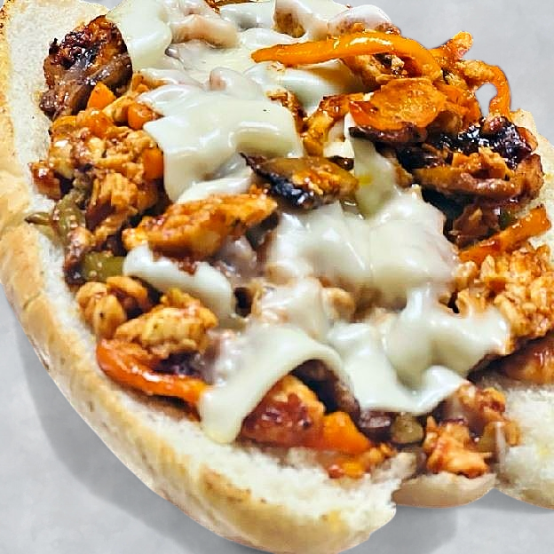 Chunks of Grilled Chicken, Swiss Cheese, Grilled Onions,Peppers and mushrooms