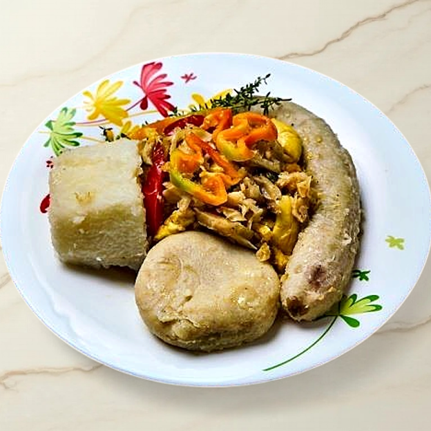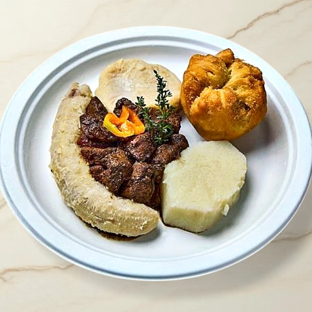 All Breakfast meals are servved with a choice of boiled dumplin, banana & yam.