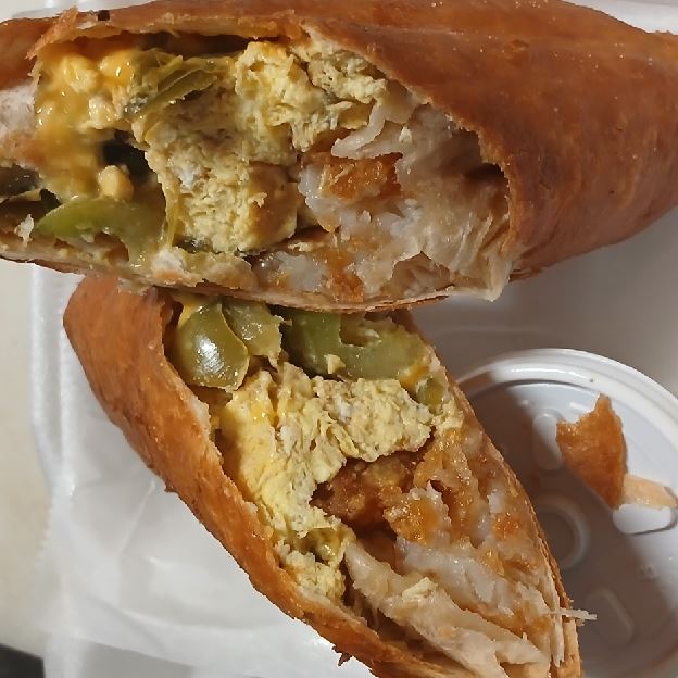 Pepper & Egg with American cheese and Hash Browns with Salsa on side