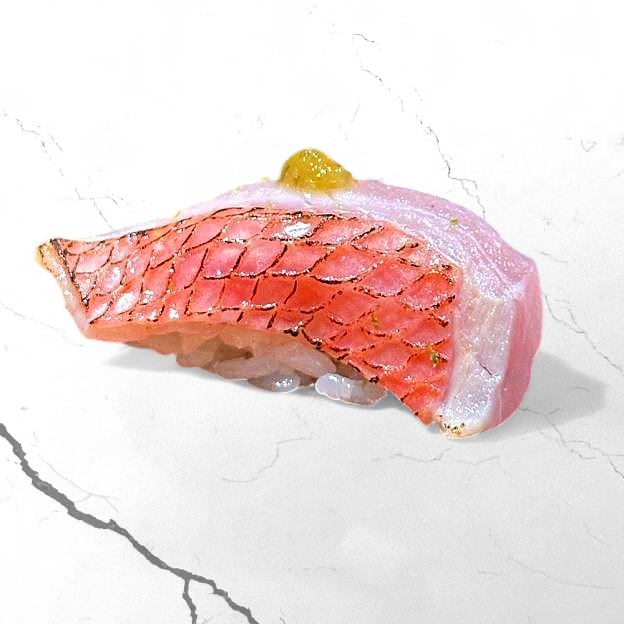 Thin sliced Japanese red snapper w. yuzu white soy