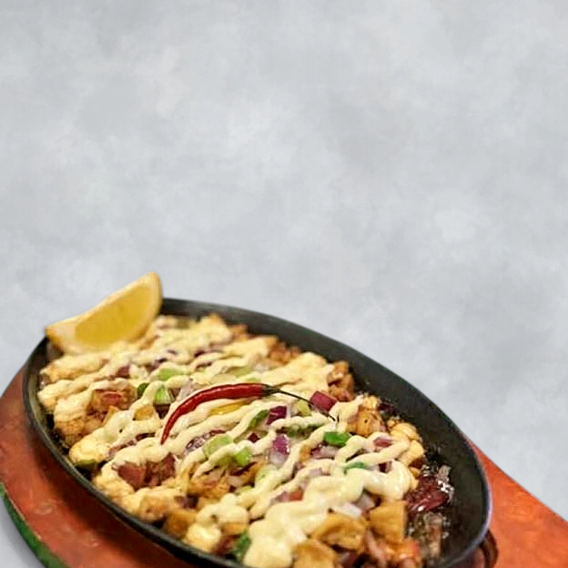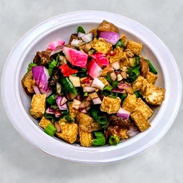 Crispy fried pork and tofu tossed in a savory soy–vinegar sauce with onions and chili, a classic Filipino appetizer