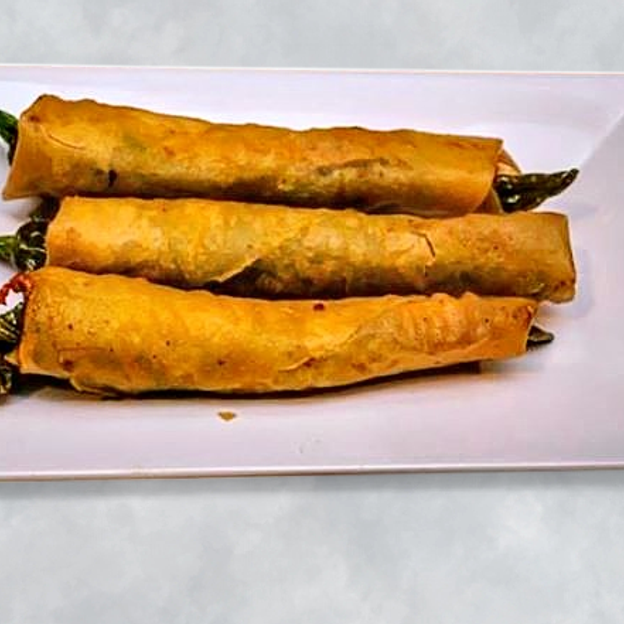 Cheese-stuffed chili pepper wrapped in crispy lumpia wrapper
