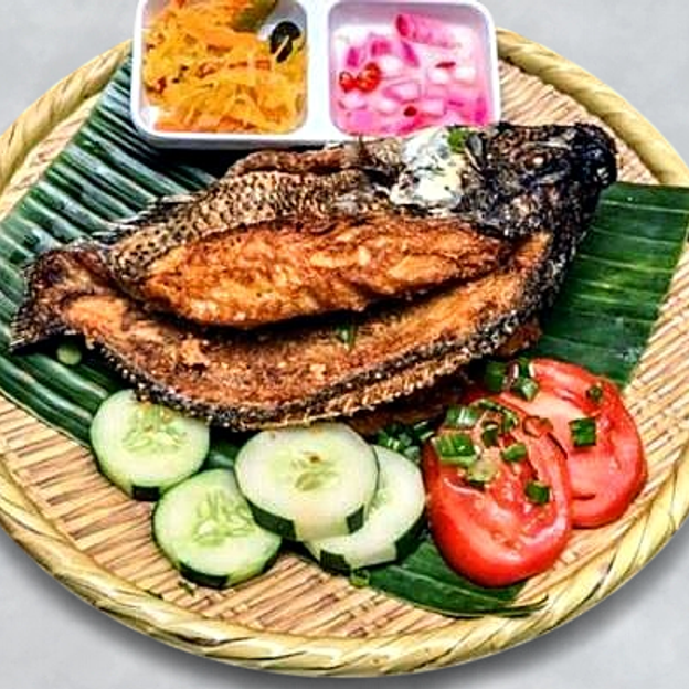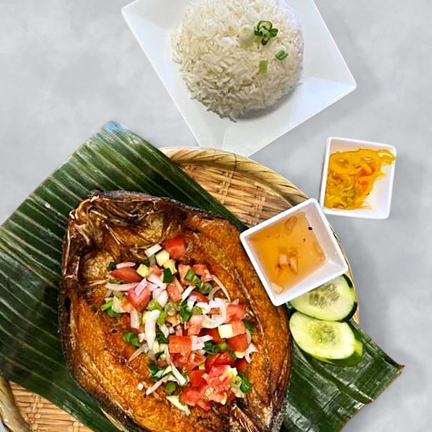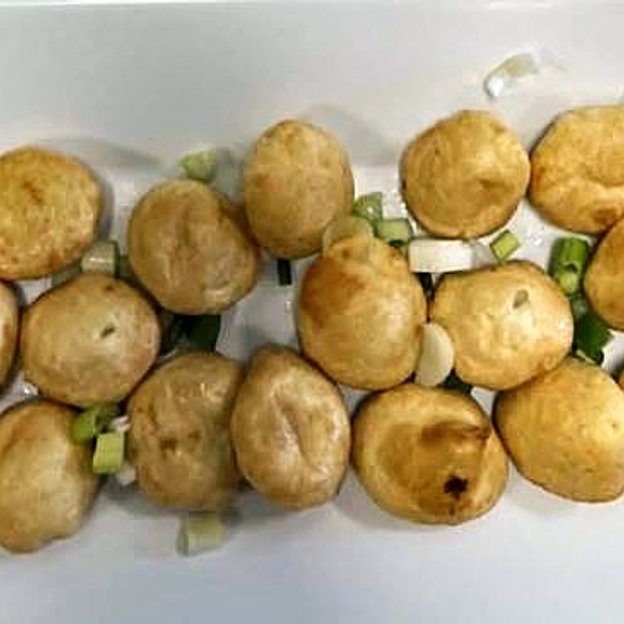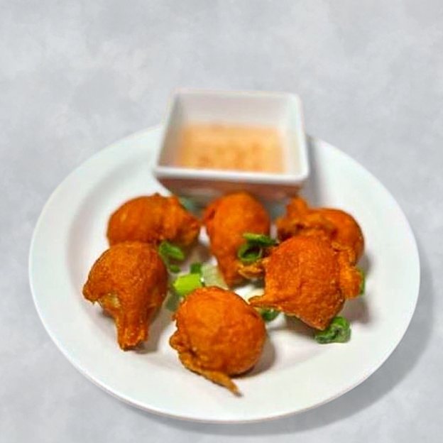 Crispy fried fish balls served with sweet, spicy, or vinegar dipping sauce.